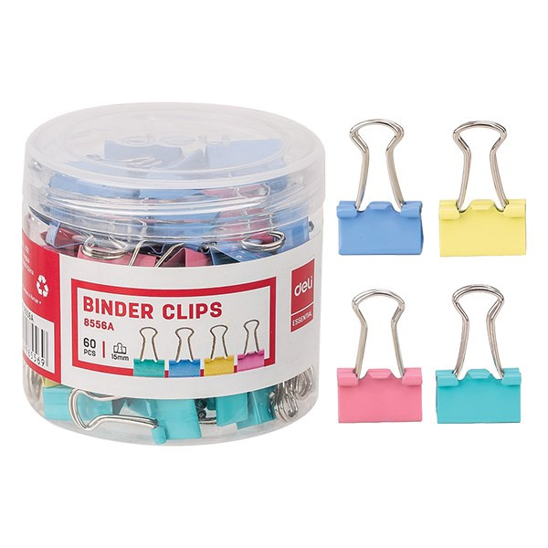 Binder csipesz DELI 15 mm színes 60 darabos