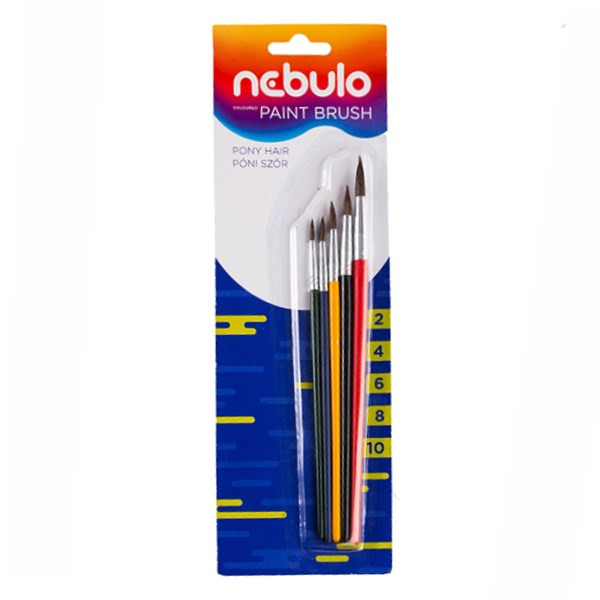 5 db-os hegyes ecset készlet festett nyéllel, póniszőr szálakkal. A hegyénél vékonyabb, az aljánál pedig vastagabb, így kontrolálható a vonalak vastagsága.