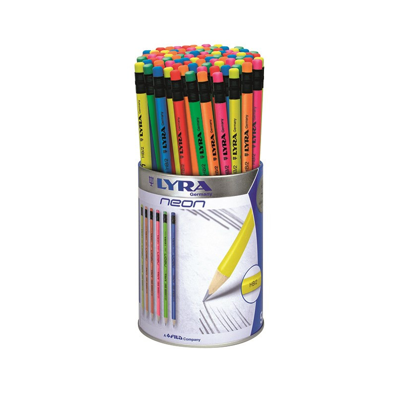 Kerek radíros grafitceruza. 6 különböző neon-fluoleszkáló bevonat. Iskolai és irodai használatra, írásra, rendkívül alkalmas. Keménysége: HB 96 db-os fémhengerben kapható.