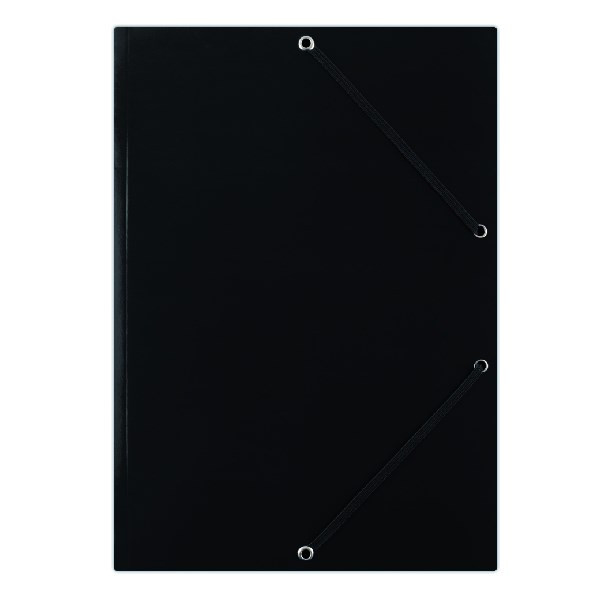 Elegáns, egyszínű gumis mappa a dokumentumok tárolásához és szállításához. A dokumentumok a három belső fülnek és a rugalmas, a sarkak felett végigfutó, a mappával azonos színű, lapos gumiszalagnak köszönhetően biztonságosan rögzített.