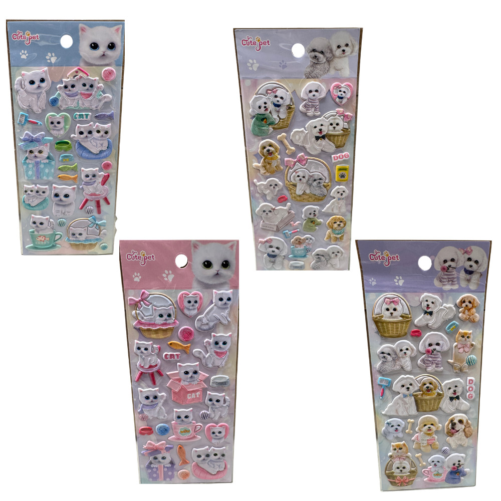 Vegyes cica, és kutya mintás pufi matrica, remekül használható jutalmazásul is. Gyerkek kedvence.