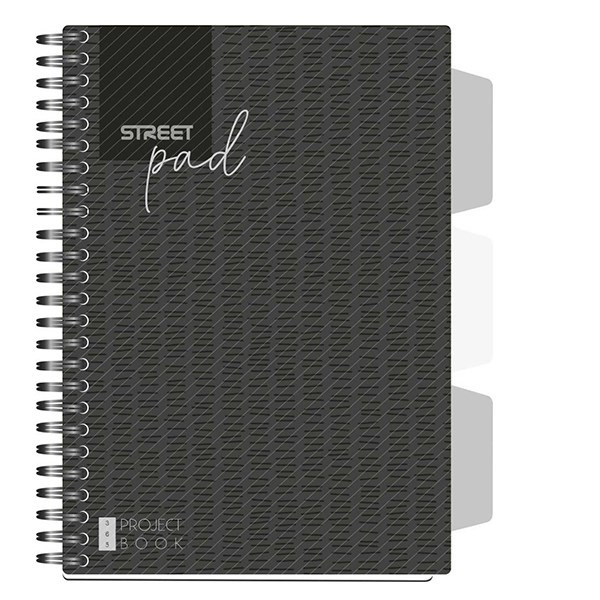 Spirálfüzet vonalas STREET Pad A/5 100 lapos regiszteres fekete
