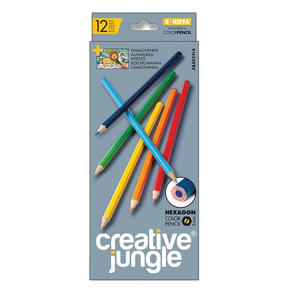Színes ceruza CREATIVE JUNGLE grey hatszögletű 12 darabos
