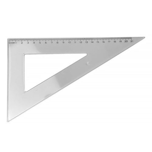 Átlátszó, műanyag, háromszög vonalzó 23cm élű.