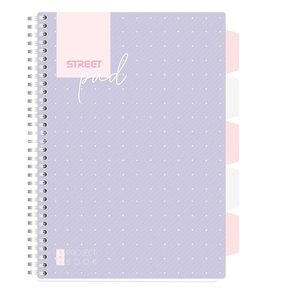 Spirálfüzet vonalas STREET Pad A/4 100 lapos regiszteres lila pöttyös