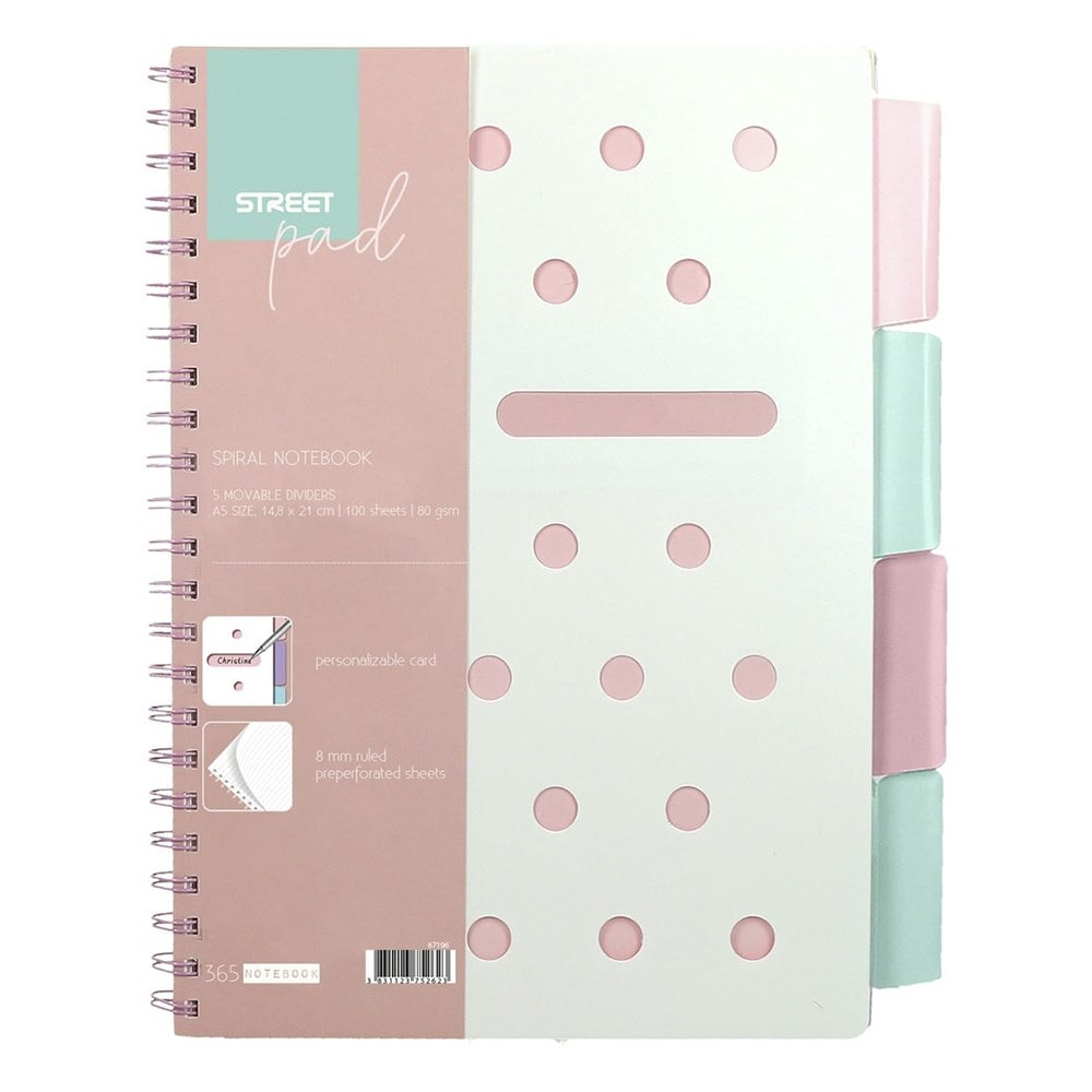 Spirálfüzet vonalas STREET Pad A/5 100 lapos regiszteres pasztell rózsaszín